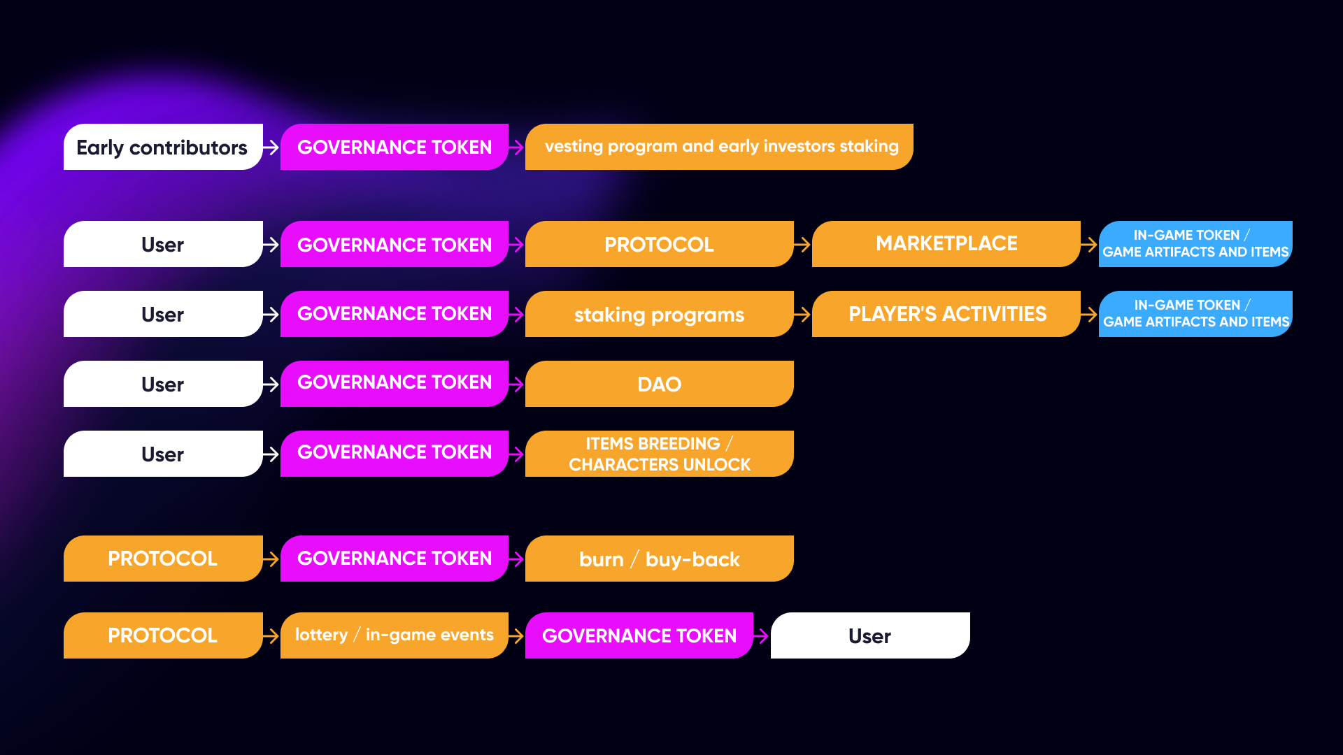 Moreover, the governance token will participate in the protocol-driven buy-back and burn program. And for extra player motivation, it will serve as one of the prizes in the lottery, a reward for daily events and constant participation in the game.