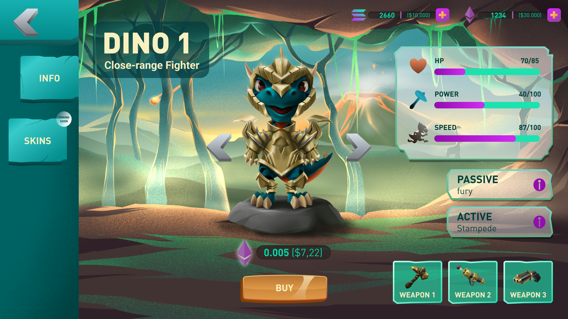 The higher the player's level is, the bigger the deposit for participation in the match, but the more significant the final reward. The balance system in DinoWars will ensure that only players of the same level participate in the match. **The main principle of DinoWars** 🦖 is that everyone earns with their skills, and therefore the game mechanics make sure that the donation will not affect the game balance. A higher level means that the competition is with the best players.